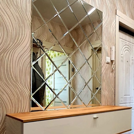 Использована зеркальная плитка "вытянутый ромб" с фацетом.